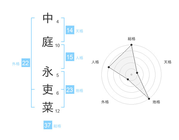 中庭 永吏菜さんの地格は23画の5点!
