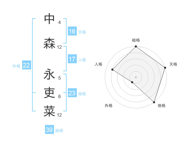 中森 永吏菜さんを姓名の画数から五運を鑑定
