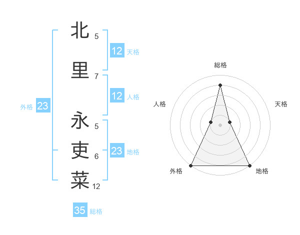 北里 永吏菜さんを姓名の画数から五運を鑑定