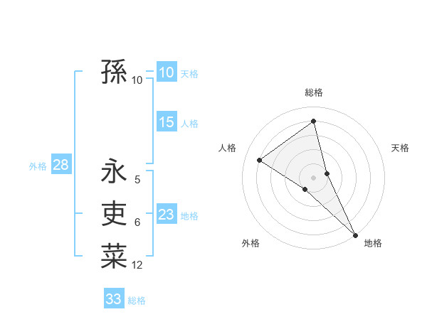 孫 永吏菜さんの地格は23画の5点!
