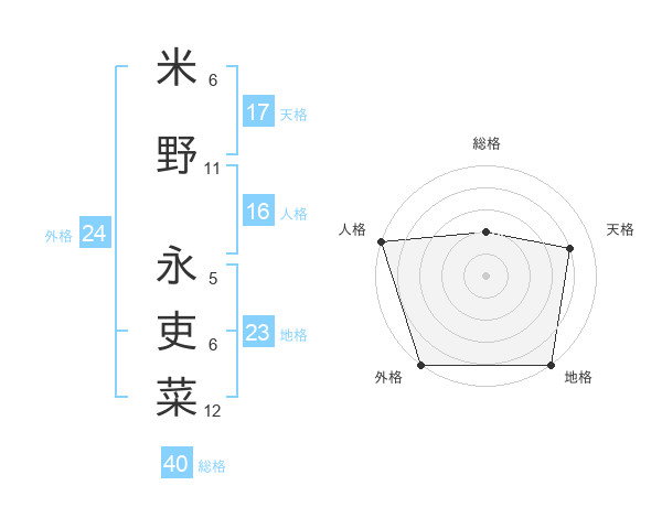 米野 永吏菜さんを姓名の画数から五運を鑑定