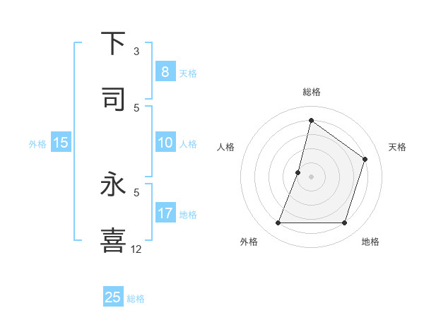下司 永喜さんの総格は25画の4点!