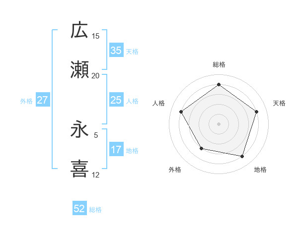 広瀬 永喜さんを姓名の画数から五運を鑑定