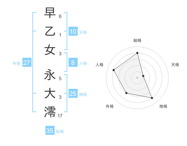 早乙女 永大澪さんを姓名の画数から五運を鑑定