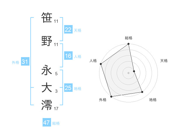 笹野 永大澪さんを姓名の画数から五運を鑑定