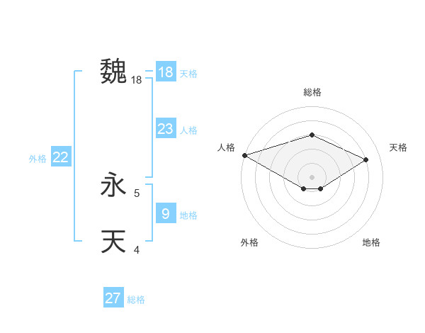魏 永天さんの総格は27画の3点!