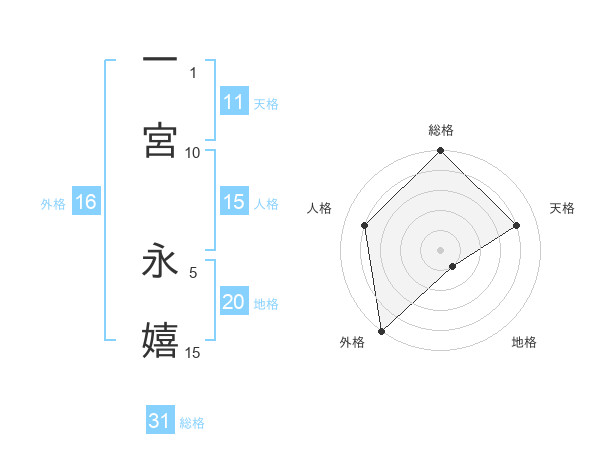 一宮 永嬉さんの総格は31画の5点!