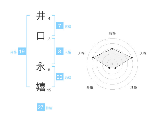 井口 永嬉さんを姓名の画数から五運を鑑定