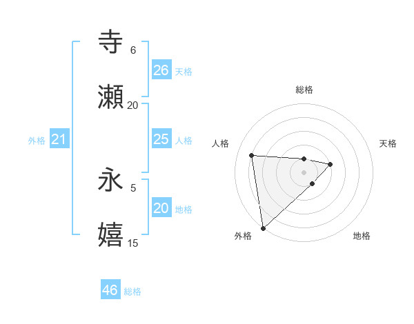 寺瀬 永嬉さんの外格は21画の5点!