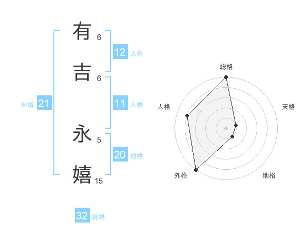 有吉 永嬉さんの外格は21画の5点!