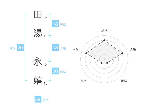 田湯 永嬉さんを姓名の画数から五運を鑑定