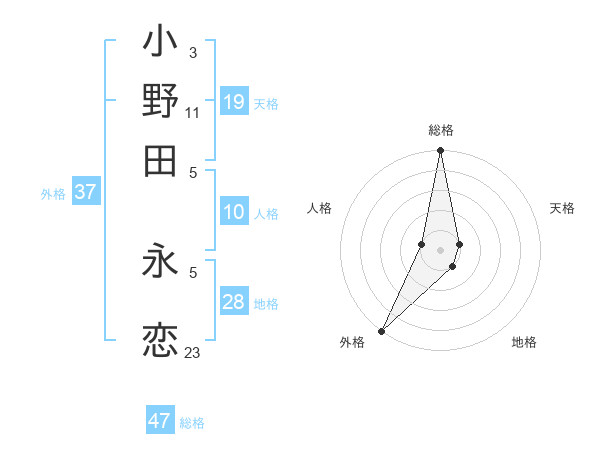 小野田 永恋さんの総格は47画の5点!