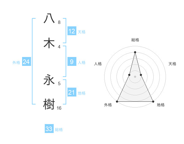八木 永樹さんの総格は33画の4点!