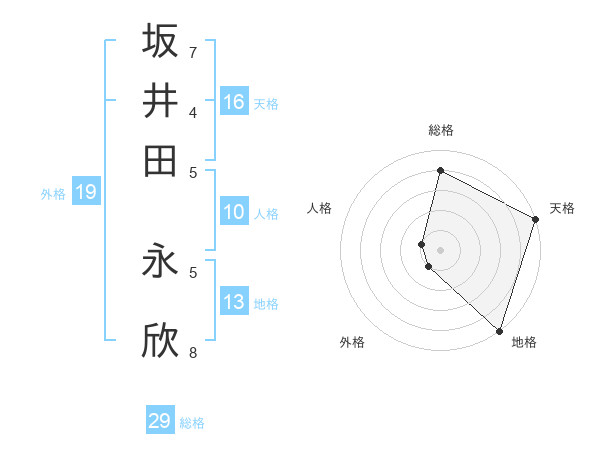 坂井田 永欣さんを姓名の画数から五運を鑑定