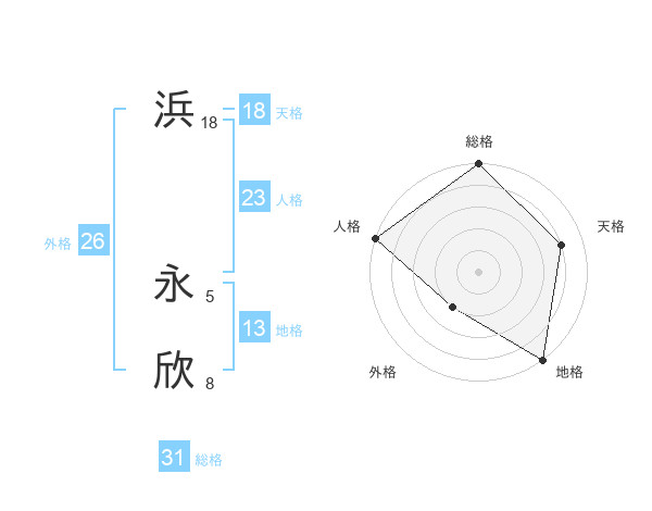 浜 永欣さんの総格は31画の5点!