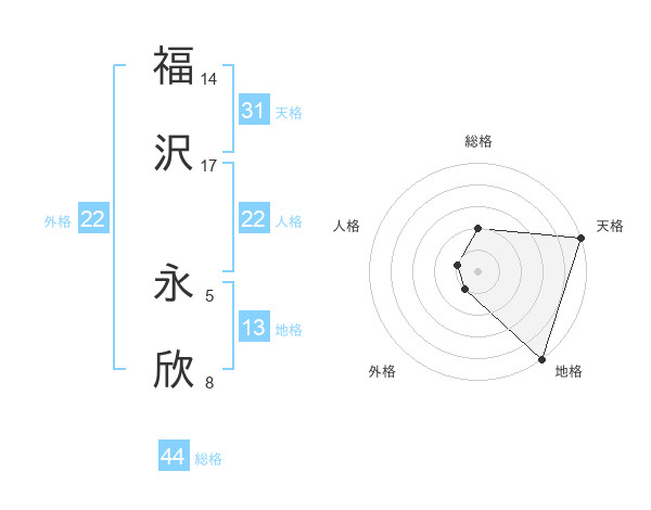 福沢 永欣さんの総格は44画の2点!