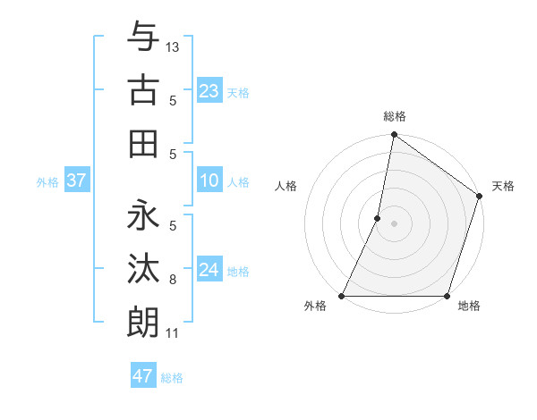 与古田 永汰朗さんを姓名の画数から五運を鑑定
