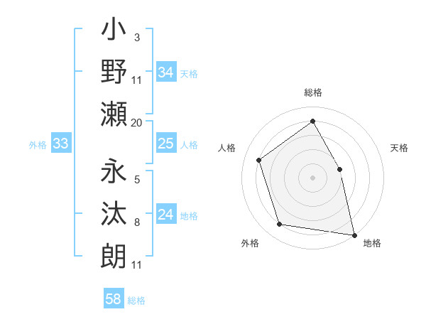 小野瀬 永汰朗さんを姓名の画数から五運を鑑定
