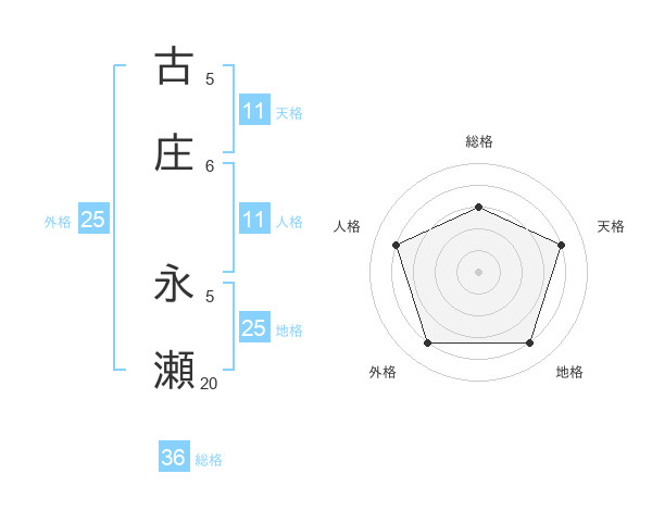 古庄 永瀬さんを姓名の画数から五運を鑑定