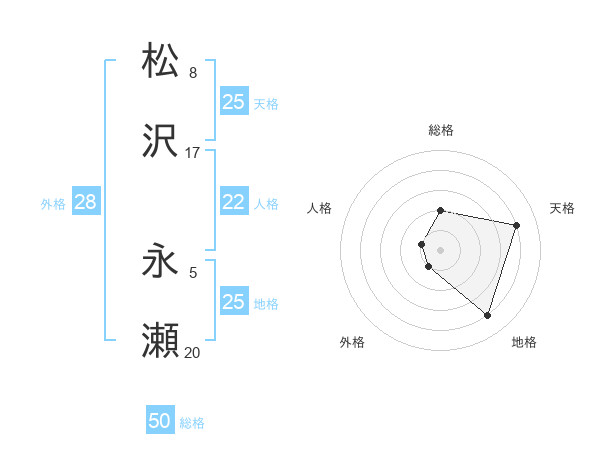 松沢 永瀬さんを姓名の画数から五運を鑑定