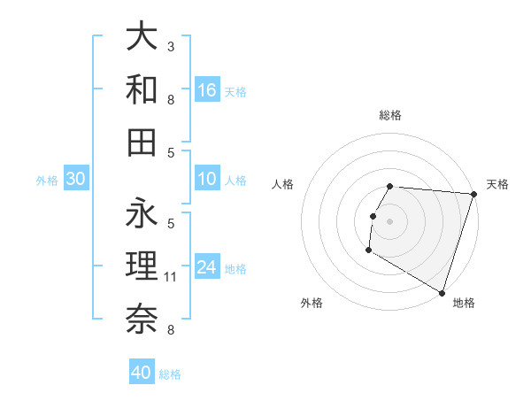 大和田 永理奈さんの天格は16画の5点!