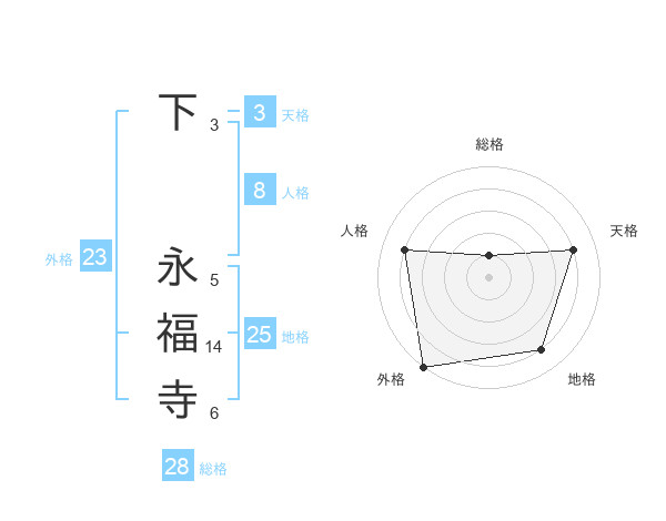 下 永福寺さんの総格は28画の1点!