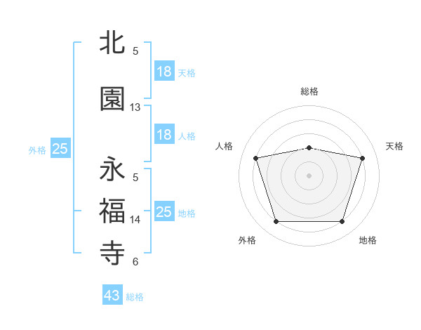 北園 永福寺さんを姓名の画数から五運を鑑定