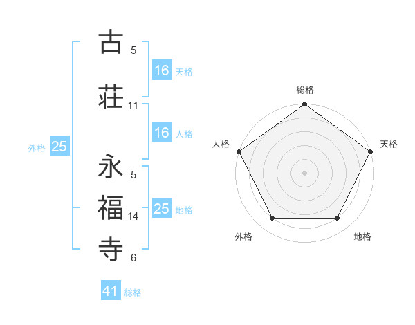 古荘 永福寺さんを姓名の画数から五運を鑑定