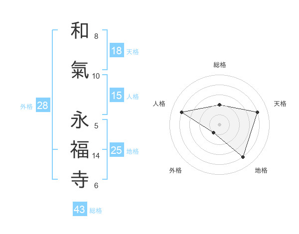 和氣 永福寺さんの総格は43画の2点!