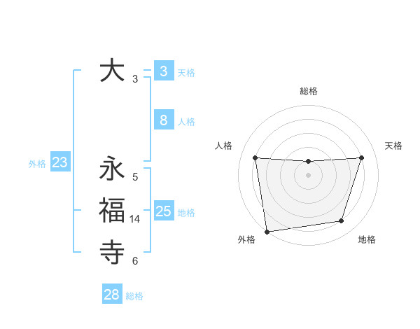 大 永福寺さんを姓名の画数から五運を鑑定