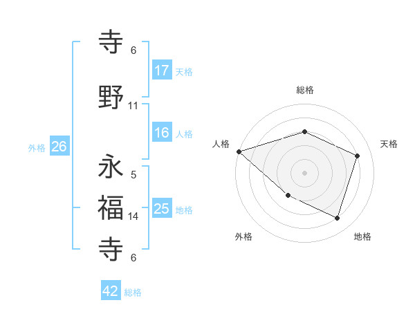寺野 永福寺さんを姓名の画数から五運を鑑定