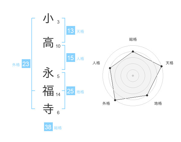小高 永福寺さんの総格は38画の4点!
