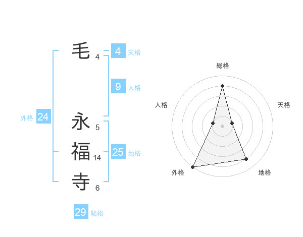 毛 永福寺さんを姓名の画数から五運を鑑定