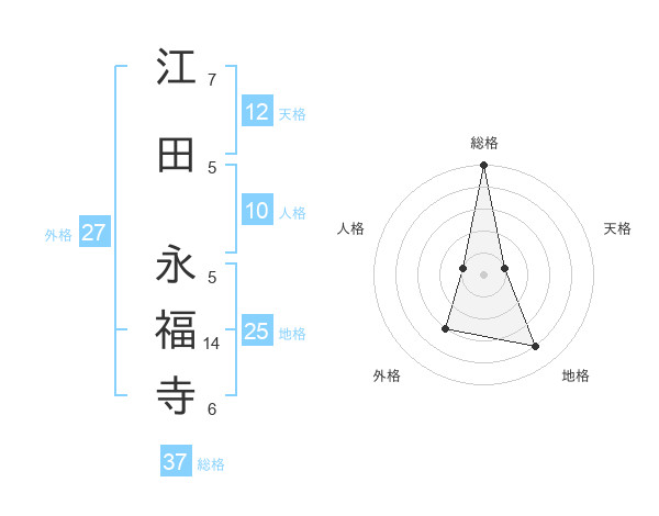 江田 永福寺さんを姓名の画数から五運を鑑定