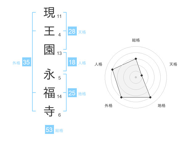 現王園 永福寺さんを姓名の画数から五運を鑑定