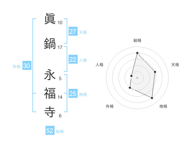 眞鍋 永福寺さんを姓名の画数から五運を鑑定