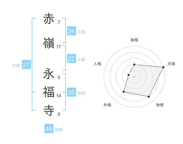 赤嶺 永福寺さんを姓名の画数から五運を鑑定