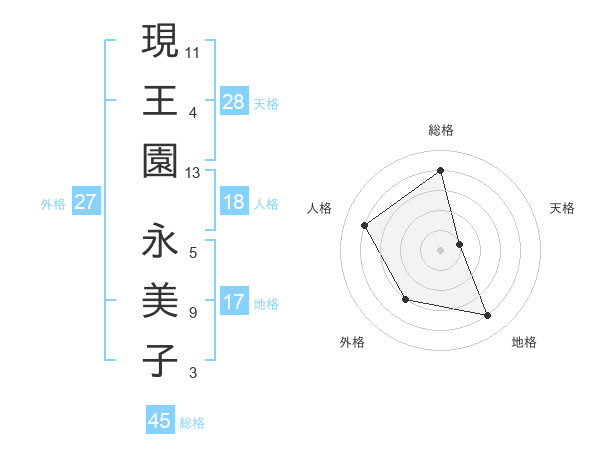 現王園 永美子さんを姓名の画数から五運を鑑定