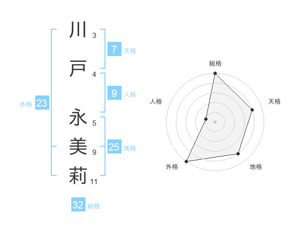 川戸 永美莉さんの総格は32画の5点!