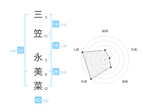 三笠 永美菜さんの総格は40画の2点!