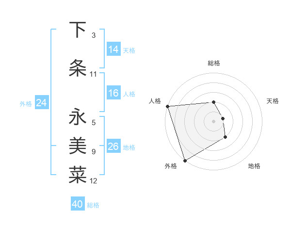 下条 永美菜さんを姓名の画数から五運を鑑定
