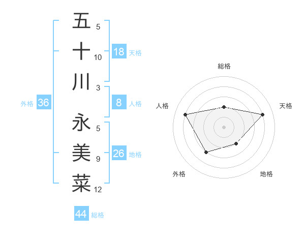 五十川 永美菜さんの総格は44画の2点!