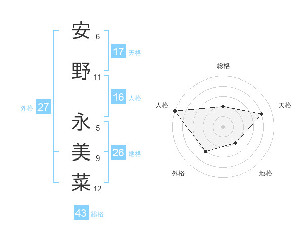 安野 永美菜さんを姓名の画数から五運を鑑定