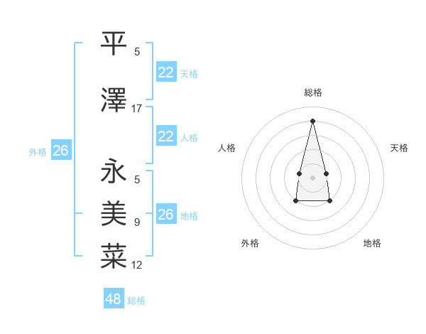 平澤 永美菜さんの総格は48画の4点!