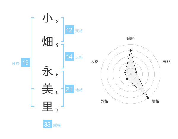 小畑 永美里さんの地格は21画の5点!