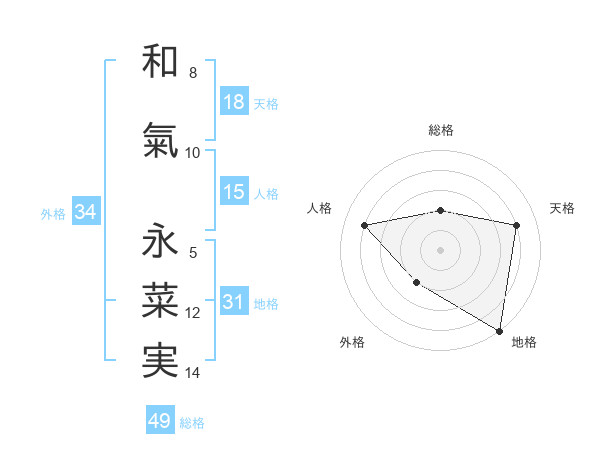 和氣 永菜実さんを姓名の画数から五運を鑑定