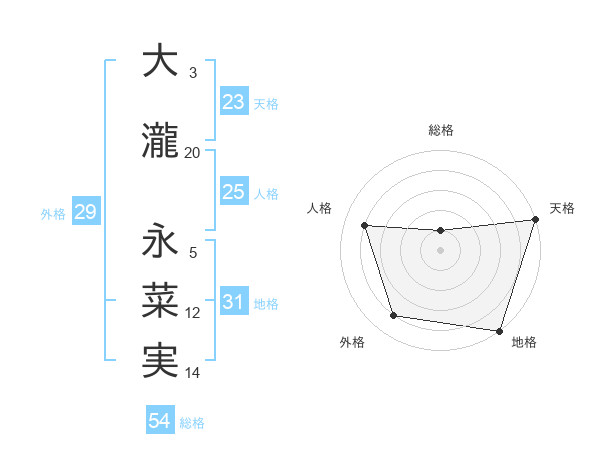 大瀧 永菜実さんを姓名の画数から五運を鑑定