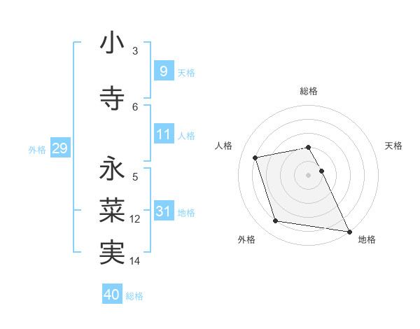 小寺 永菜実さんの総格は40画の2点!
