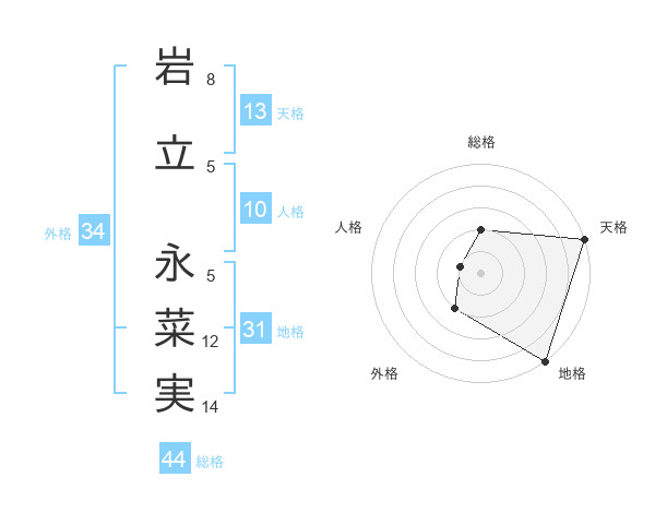 岩立 永菜実さんの総格は44画の2点