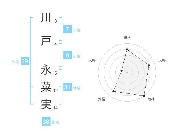 川戸 永菜実さんを姓名の画数から五運を鑑定